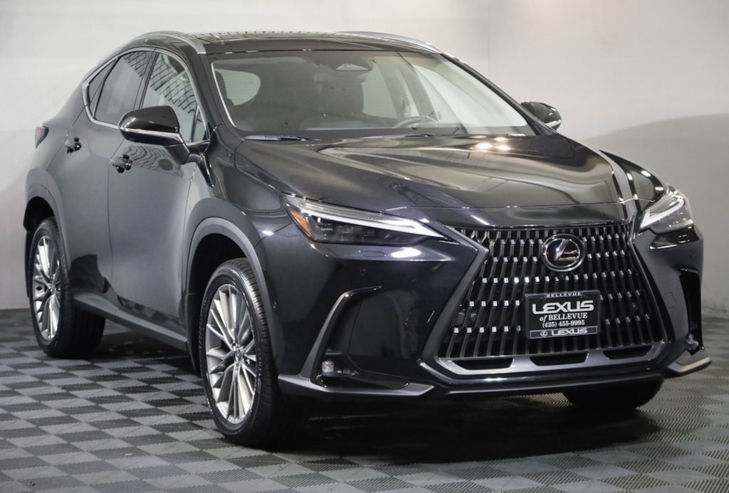 CARFAX One-Owner. Clean CARFAX. ONE OWNER ON CARFAX!, LEXUS FACTORY CERTIFIED, AWD, BACK UP CAMERA, BLUETOOTH, HEADS UP DISPLAY, HEATED AND VENTILATED SEATS, LUXURY PACKAGE, NAVIGATION, PARKING SENSORS, Mark Levinson 17-Speaker, 1,800-Watt Pureplay Surround Sound, Digital Rearview Mirror, Wireless Apple CarPlay integration, Wireless Android Auto compatibility, Blind Spot Monitor with Rear Cross-Traffic Alert, Lexus Safety System+ 3.0: Pre-Collision System with Pedestrian Detection Lexus Safety System+ 3.0: Lane Departure Alert with Steering Assist Lexus Safety System+ 3.0: Lane Tracing Assist Lexus Safety System+ 3.0: Road Sign Assist, 2.5L I4 DOHC 16V, 14 Display Navigation, Advanced Park w/Remote Park, Alloy wheels, Back Monitor, Cold Area Package, Digital Key & SmartAccess Card Key, Exterior Parking Camera Rear, Front Cross-Traffic Alert, Heads-Up Display, Heated & Ventilated Front Bucket Seats, Heated Leather Steering Wheel w/Paddle, Lane Change Assist, Luxury Package, Mark Levinson, Memory seat, Navigation system: Drive Connect Cloud Navigation (3-year trial subscription included), Outside Heated Mirrors w/Blind Spot Monitor, Panoramic Slide Moonroof/Sunroof, Panoramic View Monitor, Power Liftgate, Power moonroof, Rain sensing wipers, Wheels: 20 Alloy w/Silver Finish, Windshield Wiper De-Icer, Wireless Apple CarPlay/Wireless Android Auto, Wireless Phone Charger.2025 Lexus NX 350h Luxury Caviar AWD 2.5L I4 DOHC 16V CVTCertified. L/Certified Details: * Warranty Deductible: $0 * 161 Point Inspection * CERTIFIED WARRANTY: Unlimited-mileage warranty up to 6 years. Balance of new car warranty (4 Year/50K Miles) plus 2 Year/Unlimited-mileage L/Certified warranty. SERVICE MAINTENANCE: Complimentary Maintenance Plan covering the first four basic factory-scheduled maintenance services for 2 years or 20,000 miles * Vehicle History * Limited Warranty: 24 Month/Unlimited Mile * Roadside AssistanceOdometer is 4149 miles below market average! 41/37 City/Highway MPGCome to www.lexusofbellevue.com To See Our Specials!! Call us at 425-455-9995 for Help with any of our departments. Enjoy a seamless, transparent luxury buying experience at Lexus of Bellevue and Lexus Plus. A dealer documentary service fee in an amount up to two hundred dollars may be added to the sale price or capitalized cost.