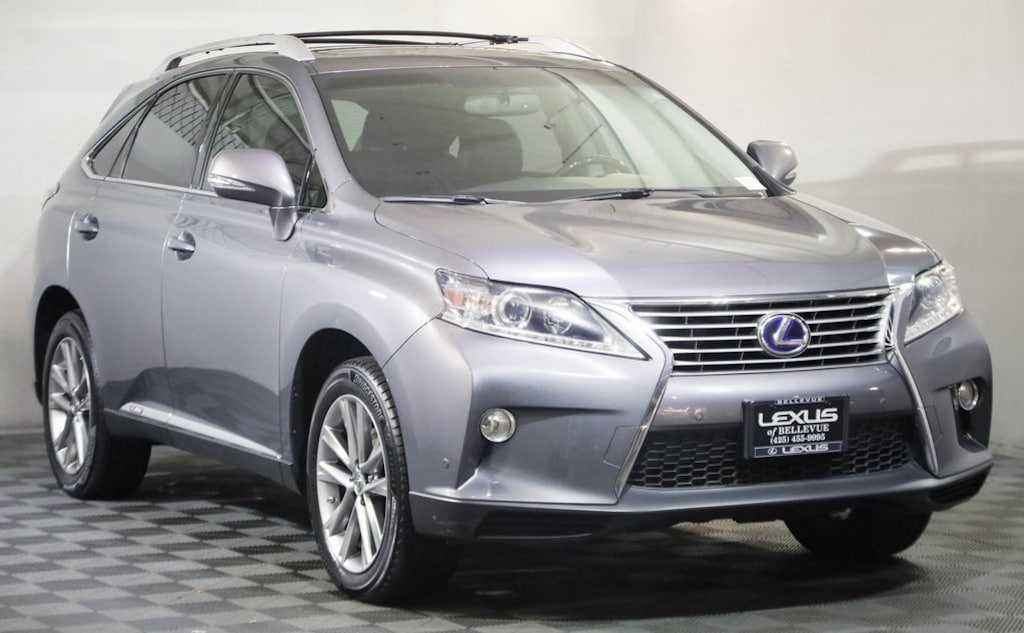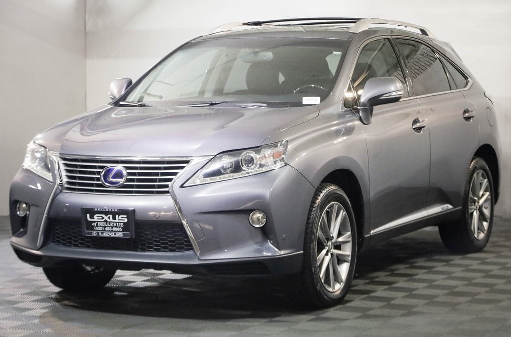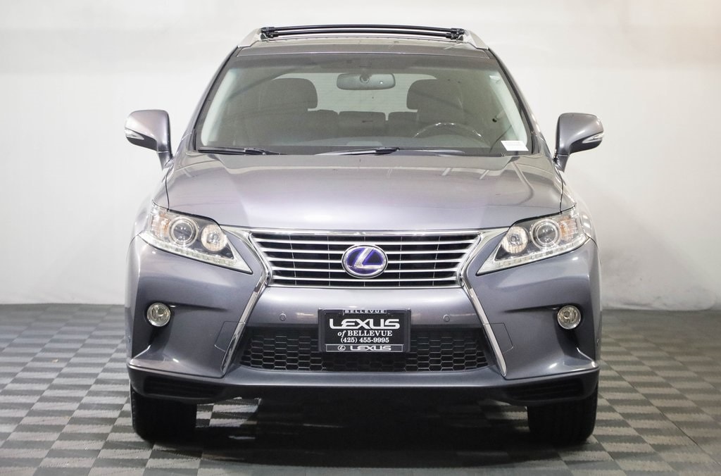CARFAX One-Owner. Clean CARFAX. ONE OWNER ON CARFAX!, LOCAL TRADE, AWD, BACK UP CAMERA, BLUETOOTH, HEATED AND VENTILATED SEATS, NAVIGATION, PARKING SENSORS, PREMIUM PACKAGE, Sport Appearance Package Includes: 19 F-Sport Superchrome Wheels, F-Sport Front Bumper, Comfort Package Includes: Rain-Sensing Wipers and Driver/Passenger Heated & Ventilated Seats, Premium Package with Blind Spot Monitor Includes: Leather Trim Interior, One-Touch Open/Close Moonroof, Power-Folding Electrochromic Heated Outside Mirrors, Driver's Seat/Steering/Mirror Memory with 3 Settings, Roof Rails, 3.5L V6 DOHC VVT-i 24V, AWD, Black w/Leather Seat Trim, 12-Speaker Premium Audio System, 19 x 7.5 Triple-Split 5-Spoke Aluminum Wheels, Alloy wheels, Backup Monitor, Blind Spot Monitoring Lane Change Assist, Bluetooth® Hands-Free Phone, Comfort Package, Driver Seat/Steering/Mirror Memory - 3 Settings, F Sport Front Bumper, HD Radio w/iTunes Tagging, HDD Navigation System w/Advanced Voice Command, Heated and Ventilated Front Seats, Heavy Duty Alternator, Heavy-Duty Radiator, Intuitive Parking Assist, Leather Seat Trim, Lexus Enform 2.0 w/Safety Connect, Lexus Insider, Navigation System, One-Touch Open/Close Moonroof, Power Liftgate, Power-Folding Electrochromic Outside Mirrors, Premium Package w/Blind Spot Monitor System, Rain-Sensing Automatic Wipers, Rear Armrest Storage w/Lid, Roof Rails, SiriusXM NavTraffic/NavWeather, Speed control, Sport Appearance Package, Towing Prep Package, Transmission Cooler, Wood & Leather Trimmed Steering Wheel & Shift Knob.2013 Lexus RX 450h Premium Nebula Gray Pearl AWD 3.5L V6 DOHC VVT-i 24V eCVTOdometer is 28159 miles below market average! 30/28 City/Highway MPGCome to www.lexusofbellevue.com To See Our Specials!! Call us at 425-455-9995 for Help with any of our departments. Enjoy a seamless, transparent luxury buying experience at Lexus of Bellevue and Lexus Plus. A dealer documentary service fee in an amount up to two hundred dollars may be added to the sale price or capitalized cost.Awards: * 2013 IIHS Top Safety Pick * 2013 KBB.com Best Resale Value Awards * 2013 KBB.com 5-Year Cost to Own Awards * 2013 KBB.com Brand Image Awards