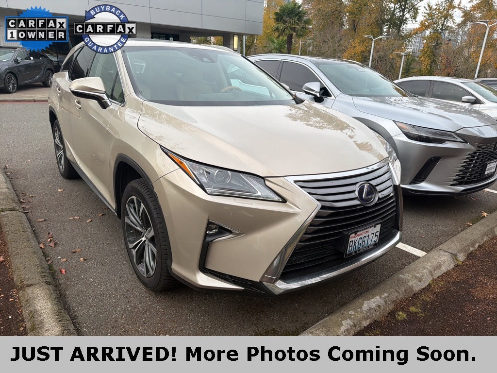 CARFAX One-Owner. Clean CARFAX. ONE OWNER ON CARFAX!, LOCAL TRADE, BOUGHT HERE SERVICED HERE, AWD, BACK UP CAMERA, BLUETOOTH, HEADS UP DISPLAY, HEATED AND VENTILATED SEATS, NAVIGATION, PARKING SENSORS, PREMIUM PACKAGE, Blind Spot Monitor with Rear-Cross Traffic Braking and Intuitive Park Assist, Lexus Safety System+; Pre-Collision System with Pedestrian Detection; All-Speed Dynamic Radar Cruise Control; Intelligent High Beam Headlamps; Lane Departure Alert w/Steering Assist & Lane Keep Assist, 3.5L V6 DOHC VVT-i 24V, AWD, Parchment w/Leather Seat Trim, 12 Speakers, 12.3 Navigation System, 20 Wheels, Active Cruise Control, Alloy wheels, Blind Spot Monitor w/Rear Cross Traffic Alert, Cold Area Package, Exterior Parking Camera Rear, Heated and Ventilated Front Seats, Heated door mirrors, Leather Shift Knob, Leather steering wheel, Memory seat, Navigation System, Power Liftgate, Power moonroof, Premium Heated Wood Steering Wheel, Premium Package, Rain sensing wipers, Speed control, Tilt & Slide Sun/Moon Roof, Wood Door Trim.2018 Lexus RX 450hL Premium Satin Cashmere Metallic AWD 3.5L V6 DOHC VVT-i 24V eCVTOdometer is 22266 miles below market average! 29/28 City/Highway MPGCome to www.lexusofbellevue.com To See Our Specials!! Call us at 425-455-9995 for Help with any of our departments. Enjoy a seamless, transparent luxury buying experience at Lexus of Bellevue and Lexus Plus. A dealer documentary service fee in an amount up to two hundred dollars may be added to the sale price or capitalized cost.Awards: * 2018 KBB.com Best Resale Value Awards * 2018 KBB.com 10 Most Awarded Brands * 2018 KBB.com Brand Image Awards