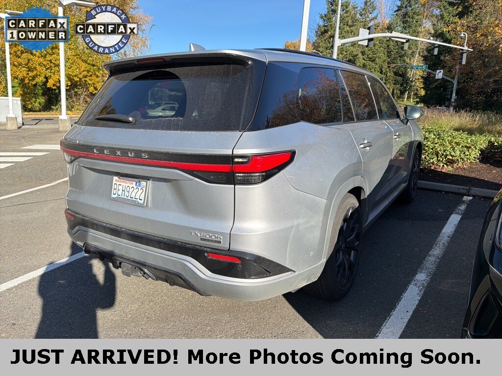CARFAX One-Owner. 2 YEARS OR 20K MILES MAINTENANCE INCLUDED!, ONE OWNER ON CARFAX!, LOCAL TRADE, BOUGHT HERE SERVICED HERE, LEXUS FACTORY CERTIFIED, AWD, F-SPORT, BACK UP CAMERA, BLUETOOTH, HEADS UP DISPLAY, HEATED AND VENTILATED SEATS, LUXURY PACKAGE, NAVIGATION, PARKING SENSORS, Wireless Apple CarPlay integration, Wireless Android Auto compatibility, Mark Levinson 21-speaker PurePlay Surround Sound, Blind Spot Monitor with Rear Cross-Traffic Alert, Safety Connect with up to 10-year trial Service Connect with up to 10-year trial Lexus Safety System+ 3.0: Full-Speed Range Dynamic Radar Cruise Control Lexus Safety System+ 3.0: Pre-Collision System with Pedestrian Detection Lexus Safety System+ 3.0: Lane Departure Alert with Steering Assist Lexus Safety System+ 3.0: Lane Tracing Assist Lexus Safety System+ 3.0: Road Sign Assist Lexus Safety System+ 3.0: Automatic High Beams Lexus Safety System+ 3.0: Proactive Driving Assist, 2.4L I4 Turbocharged, 21 Speakers, ABS brakes, Active Cruise Control, Adaptive suspension, Advanced Park w/Remote Park, Alloy wheels, Convenience Package, Digital Key & SmartAccess Card Key, Digital Rearview Mirror, Electronic Stability Control, Exterior Parking Camera Rear, F Sport Luxury Upgrade Package, Front dual zone A/C, Head-Up Display, Heated & Ventilated Second-Row Captain's Chairs, Heated and Ventilated Front Seats, Heated door mirrors, Heated steering wheel, Illuminated entry, Lane Keeping System, Low tire pressure warning, Navigation System, Panoramic View Monitor, Power Liftgate, Power moonroof, Power Reclining Outboard Rear Seats, Radio: Lexus Interface w/Mark Levinson Audio, Rain sensing wipers, Remote keyless entry, Technology Package, Traction control, Wheels: 22 Split 5-Spoke Alloy.2025 Lexus TX 500h F SPORT Luxury Celestial Silver AWD 2.4L I4 Turbocharged 6-Speed AutomaticCertified. L/Certified Details: * CERTIFIED WARRANTY: Comprehensive Inspection, Unlimited-mileage warranty up to 6 years. Balance of new car warranty (4 Year/50K Miles) plus 2 Year/Unlimited-mileage L/Certified warranty. SERVICE MAINTENANCE: Complimentary Maintenance Plan covering the first four basic factory-scheduled maintenance services for 2 years or 20,000 miles * Vehicle History * Roadside Assistance * Warranty Deductible: $0 * Limited Warranty: 24 Month/Unlimited Mile27/28 City/Highway MPGCome to www.lexusofbellevue.com To See Our Specials!! Call us at 425-455-9995 for Help with any of our departments. Enjoy a seamless, transparent luxury buying experience at Lexus of Bellevue and Lexus Plus. A dealer documentary service fee in an amount up to two hundred dollars may be added to the sale price or capitalized cost.