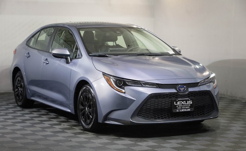 CARFAX One-Owner. Clean CARFAX. ONE OWNER ON CARFAX!, BACK UP CAMERA, BLUETOOTH, HEATED FRONT SEATS, Premium Interior Package Includes: SofTex-Trimmed Seats, Heated Front Seats, Leather-Trimmed Steering Wheel, Power Driver Seat with Lumbar Support, Blind Spot Monitor with Rear Cross-Traffic Alert, Apple CarPlay Compatible, Toyota Safety Sense 2.0: Pre-Collision Sys w/Pedestrian Detection, Full-Speed Range Dynamic Radar Cruise Control, Lane Departure Alert w/Steering Assist, Lane Tracing Assist, Automatic High Beams, Road Sign Assist, 1.8L DOHC 16V VVT, 3-Spoke Leather Steering Wheel, 6 Speakers, Air Conditioning, Apple CarPlay/Android Auto, Blind Spot Monitor w/RCTA, Cushion & Back Seat Heater, Exterior Parking Camera Rear, Heated and Ventilated Front Seats, Power Driver's Seat, Premium Interior Package, SofTex Leather Seat Trim, Variably intermittent wipers, Wheels: 15 Alloy w/Cover.2022 Toyota Corolla Hybrid LE Celestite FWD 1.8L DOHC 16V VVT CVTOdometer is 37451 miles below market average! 53/52 City/Highway MPGCome to www.lexusofbellevue.com To See Our Specials!! Call us at 425-455-9995 for Help with any of our departments. Enjoy a seamless, transparent luxury buying experience at Lexus of Bellevue and Lexus Plus. A dealer documentary service fee in an amount up to two hundred dollars may be added to the sale price or capitalized cost.