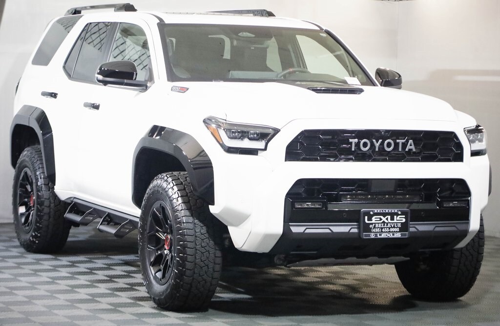 CARFAX One-Owner. Clean CARFAX. ONE OWNER ON CARFAX!, LOCAL TRADE, BACK UP CAMERA, HEATED AND VENTILATED SEATS, Heated and Leather-Trimmed Power Tilt/Telescopic Steering, Blind Spot Monitor (BSM) with Rear Cross-Traffic Alert (RCTA) and Trailer Merge Warning, oyota Safety Sense 3.0 (TSS 3.) Pre-Collision System with Pedestrian Detection (PCS w/PD), Lane Tracing Assist (LTA), Dynamic Radar Cruise Control (DRCC), Lane Departure Alert with Steering Assist (LDA w/SA), Automatic High Beams (AHB), Road Sign Assist (RSA), Proactive Drive Assist (PDA), 2.4L I4 FI Hybrid Turbocharged DOHC 16V, 15 Speakers, Active Cruise Control, Alloy wheels, Apple CarPlay/Android Auto, Exterior Parking Camera Rear, Heated & Ventilated Front Bucket Seats, Heated door mirrors, Leather Shift Knob, Leather steering wheel, Navigation System, Radio: 14 Audio, SofTex Seat Trim, Speed control, TRD Pro Package, Wheels: 18 Matte-Black TRD Alloy.2025 Toyota 4Runner i-FORCE MAX Hybrid TRD Pro Ice Cap 4WD 2.4L I4 FI Hybrid Turbocharged DOHC 16V 8-Speed AutomaticCome to www.lexusofbellevue.com To See Our Specials!! Call us at 425-455-9995 for Help with any of our departments. Enjoy a seamless, transparent luxury buying experience at Lexus of Bellevue and Lexus Plus. A dealer documentary service fee in an amount up to two hundred dollars may be added to the sale price or capitalized cost.